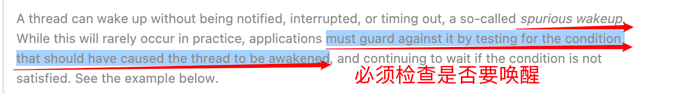 因为之前看到一个词叫作虚假唤醒,我一遍只是记得书中在强调使用 while 子句进行检查,而不是用if子句检查,但是对这个印象比较深刻。