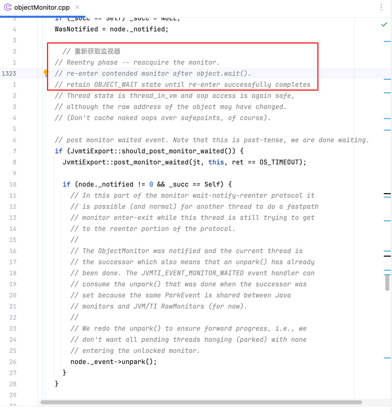再来看下objectMonitor.cpp中针对 wait 方法的实现void ObjectMonitor::wait
